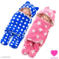 BRANDONN New born Hooded Wearable Baby Blanket Cum Baby Wrapper Blanket For Babies Combo of 2 Fabric: Polycotton Print or Pattern Type: Polka Multipack: 2 Thread Count: 400 Sizes: Free Size (Length Size: 27 in, Width Size: 30 in)